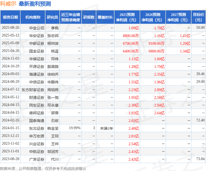 证券之星数据中心根据近三年发布的研报数据计算,东北证券韩金呈研究员团队对该股研究较为深入,近三年预测准确度均值为19.99%,其预测2025年度归属净利润为盈利2.4亿,根据现价换算的预测PE为14.85。